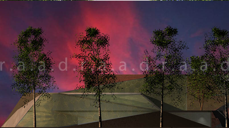 The Solar is located in one of Guadalajara´s most cultural boulevards (Chapultepec´s avenue). By day it is a commercial/economical zone, while by night lots of bars and coffee shops gives it a different life. The concept is precisely to impulse this non-stop transformation of people and activities, by giving a program that attract people with different interest and most importantly: a program that does not deny the pass of time. Aside from this, I didn’t want to create a big architectonic object that once extruded up pushes the passer-by to a stretch banquet or street, but rather a space on which one can walk on, just like a park. Like if the solution for architecture was to make parks or any open air space, that can shelter all the indoor activities, like working in an office, watching a movie, taking a drink, reading or buying a book, see an exhibition or give and listen a conference, etc. Invisible architecture. How to make this utopia possible is the aim of this project; the dualism of in and out, open but sheltered, building but park, etc. The best way to explain this, is imagining a building from above, where only the roofs could be seen, and the free space and relationship that it creates with the overview of the streets around it. So I wanted to keep as much “free roof to walk on” as possible, to keep it as close as possible to the ground level and at the same time make it lodge a big activity program during day and night. The roof of the building is a continuous ramp, under which all the inner program is fit together. It is like a “Lego” construction covered by a handkerchief. The vertical fluxes are inside, and from the outer ramp, one can access the insides at any level. The indoor programs lodge the library, parking place, offices, research and documentary center, the gallery, the two auditoriums and the services; the outdoor program “lodges” the open air scenes, terraces, coffees and bars and the free spaces for lying down, reading, playing, etc.